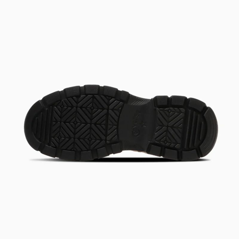 サイドにジッパーで、スムーズに着脱できる機能性をプラス。厚みのあるE.V.A.ミッドソールや防滑性を意識した
