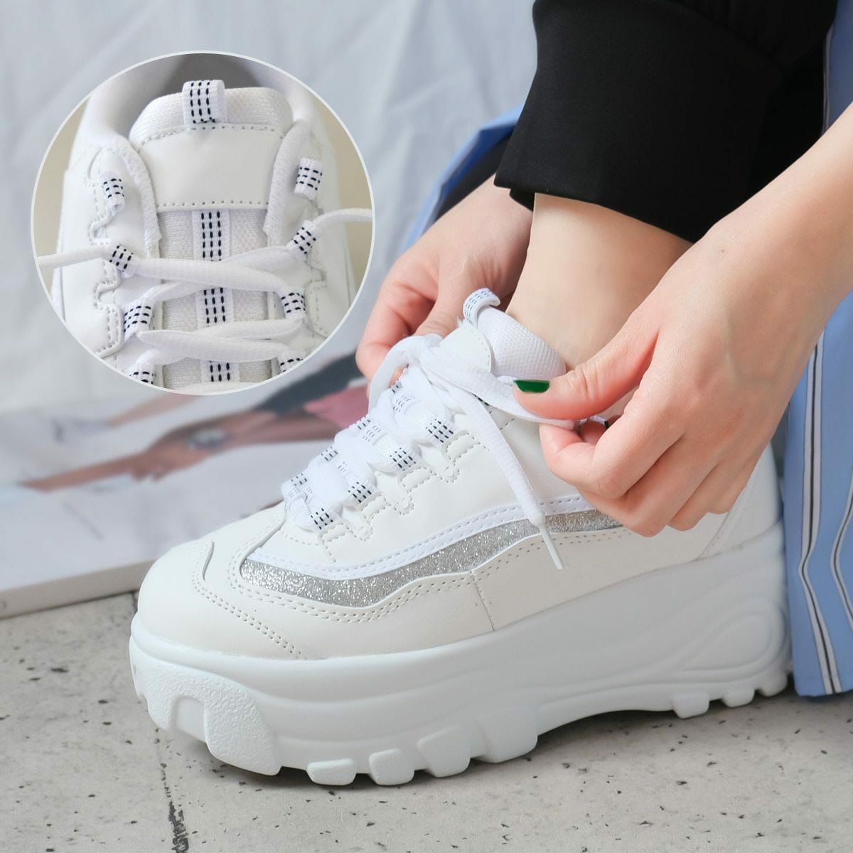 レースアップ厚底スニーカー レディース