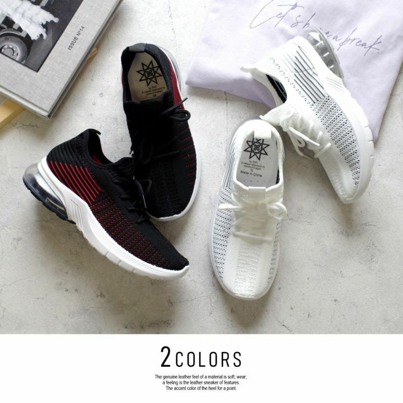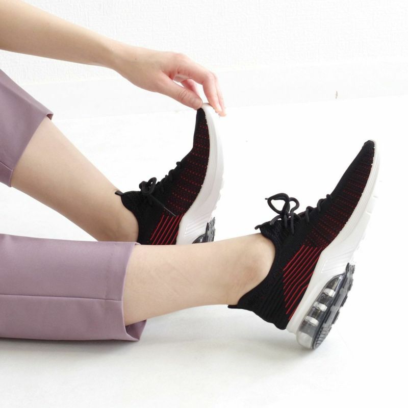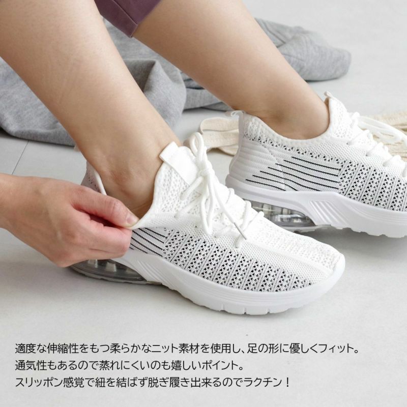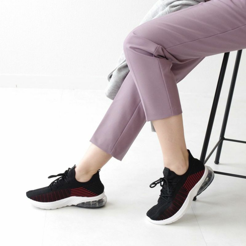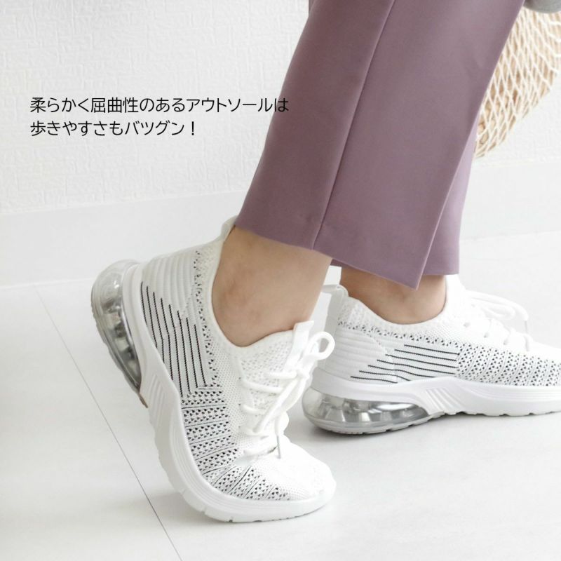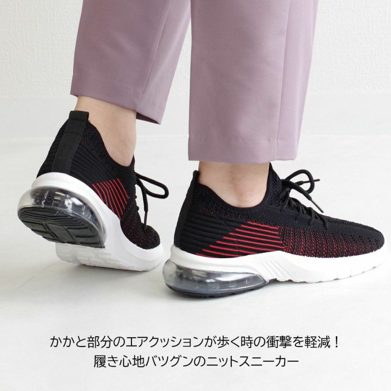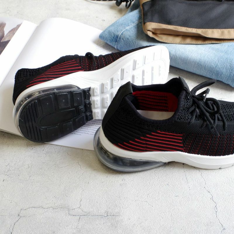 歩く時の衝撃を軽減してくれるエアクッション付ニットスニーカー