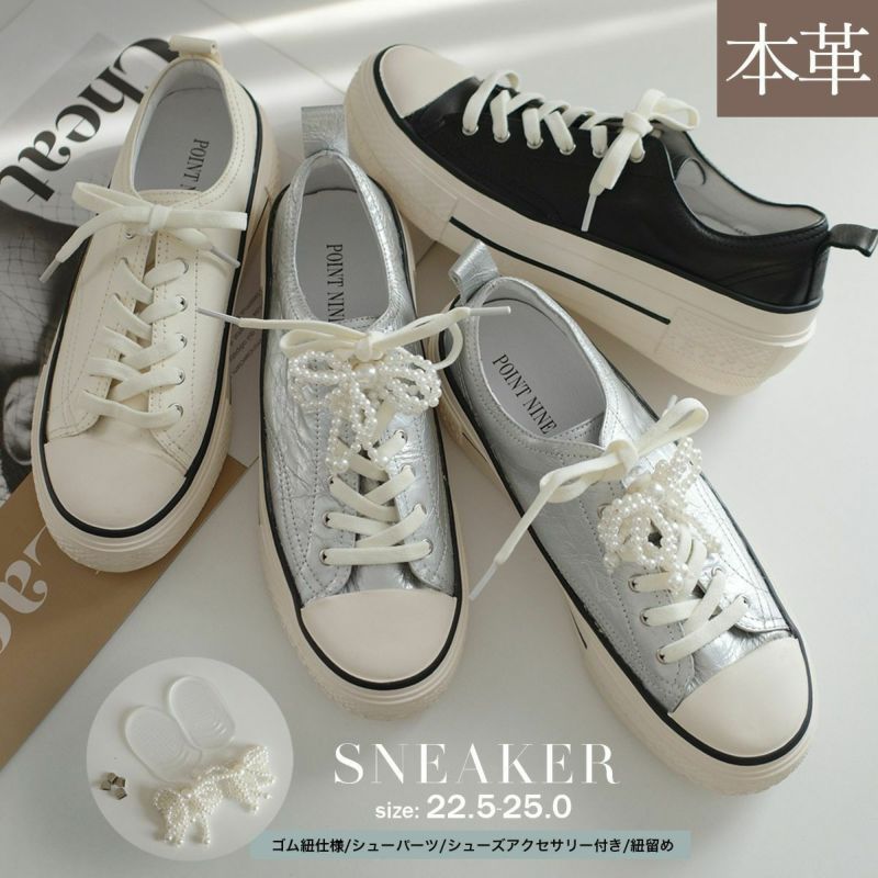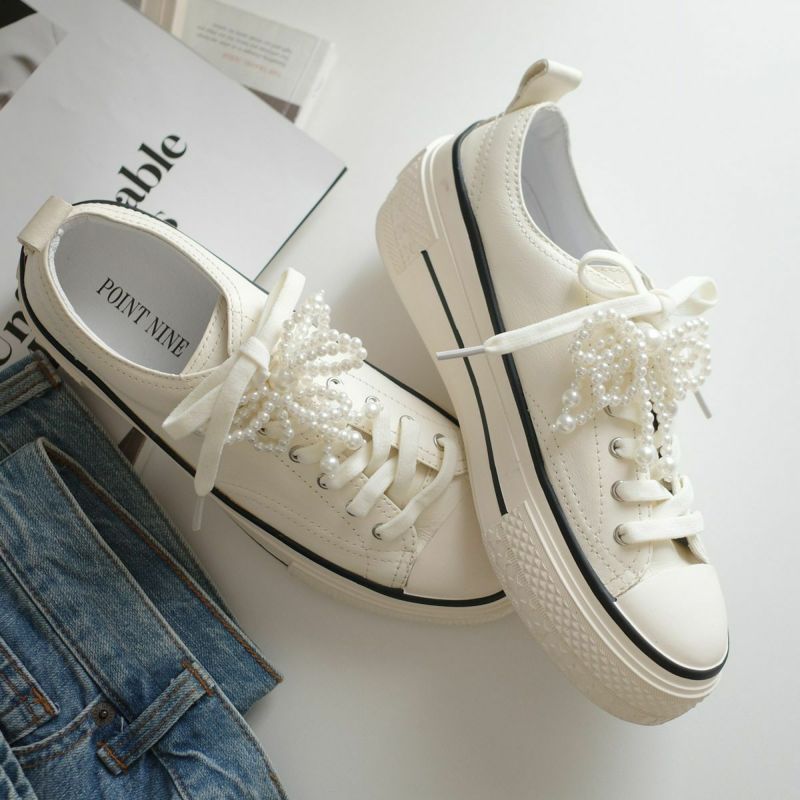 スニーカーの紐にパールアクセサリを取り付けていつものスニーカーをかわいく簡単アレンジ!