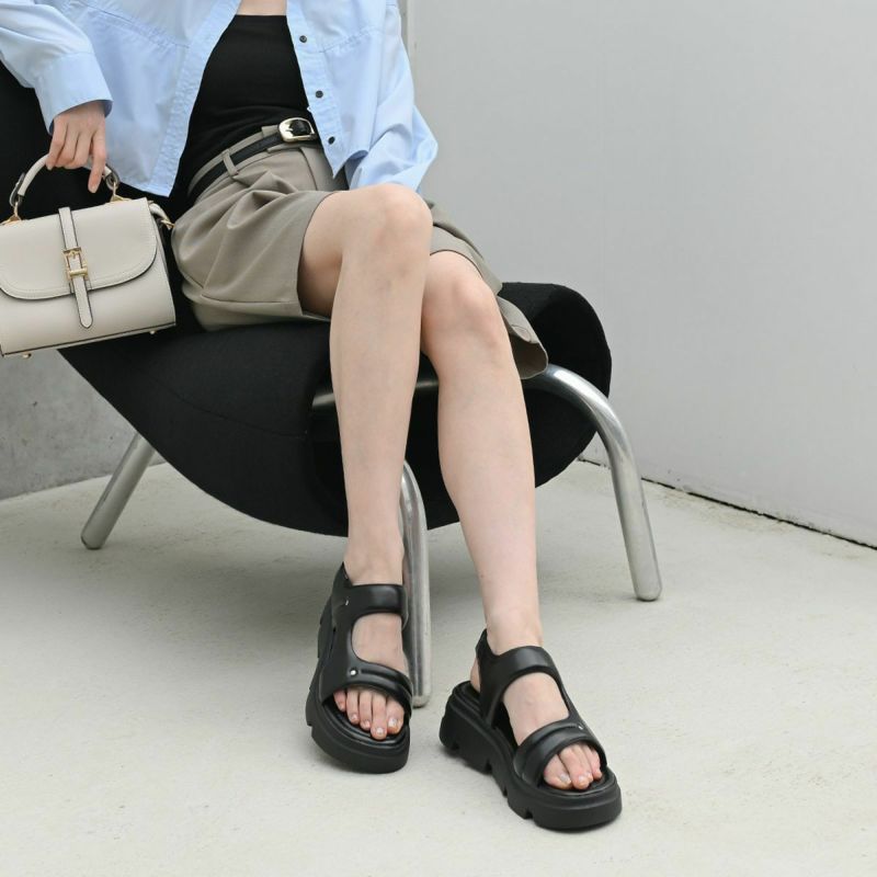 ふかふか肉厚なダブルベルトでホールド感も抜群!ボリュームのある厚底は履くだけでスタイルアップが叶う!