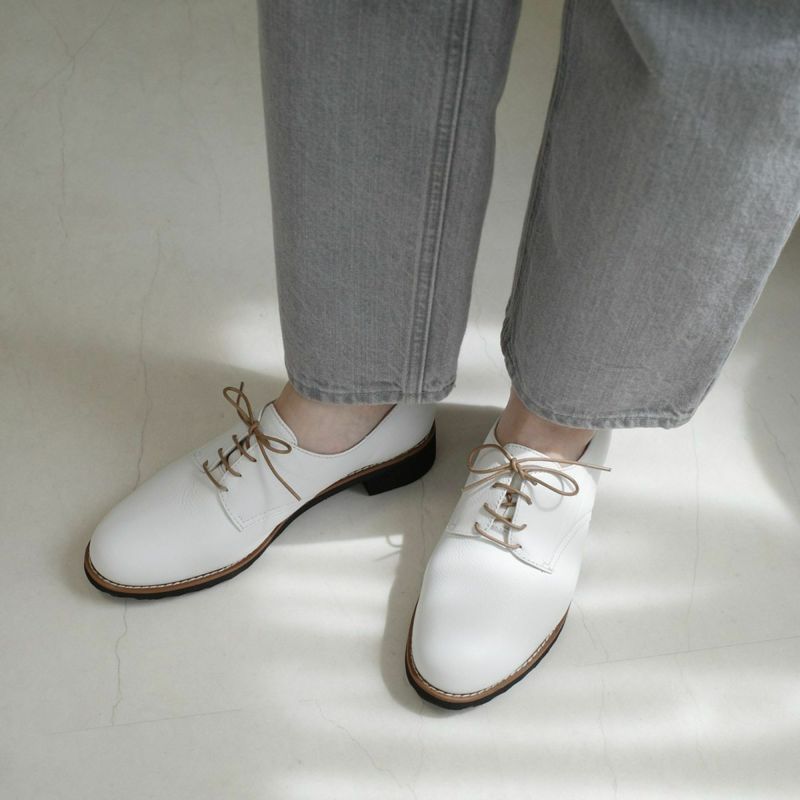 レースアップ×ステッチ入りのピースが一味違うこなれた足元を演出します。
