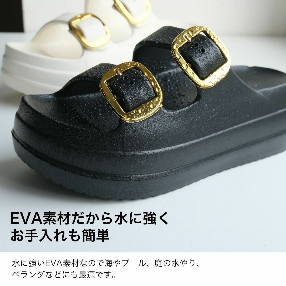 ダブルストラップミュールサンダル レディース