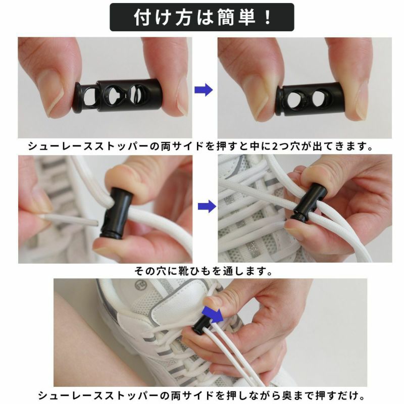 簡単!紐をストッパーに通すだけ!二つ穴タイプ