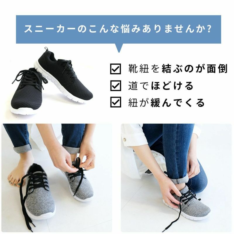 靴紐を結ぶのが面倒・ほどける・緩んでくるなどのストレス解消!