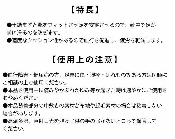 土踏まずと靴をフィットさせ、靴中で足が前に滑るのを防ぎます。