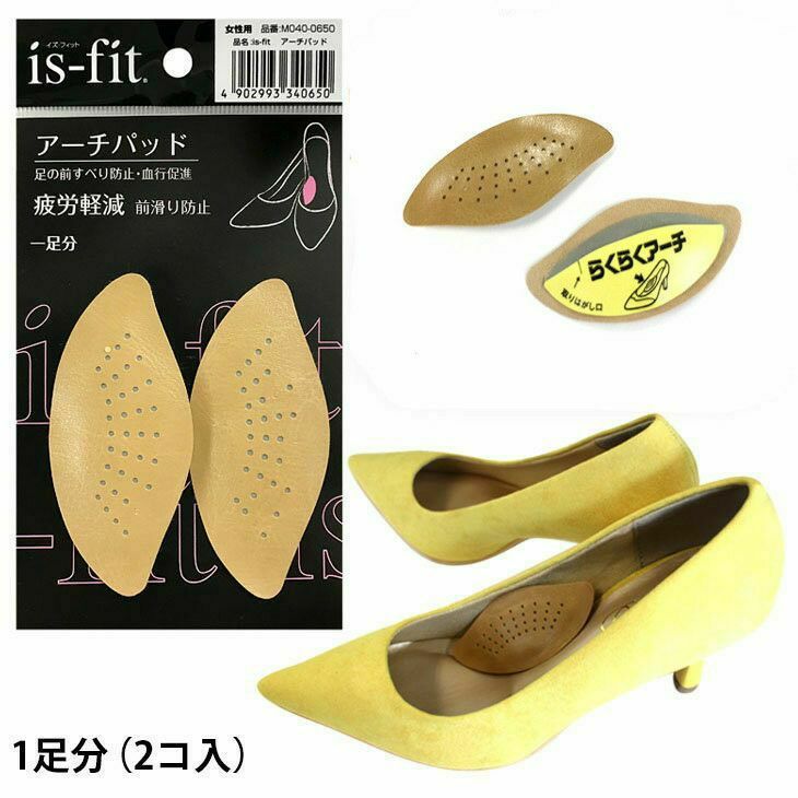 is-fit アーチパッド 女性用 疲労軽減 前滑り防止 血行促進 抗菌防臭 クッション性 パンプス ヒール 土踏まず フィット