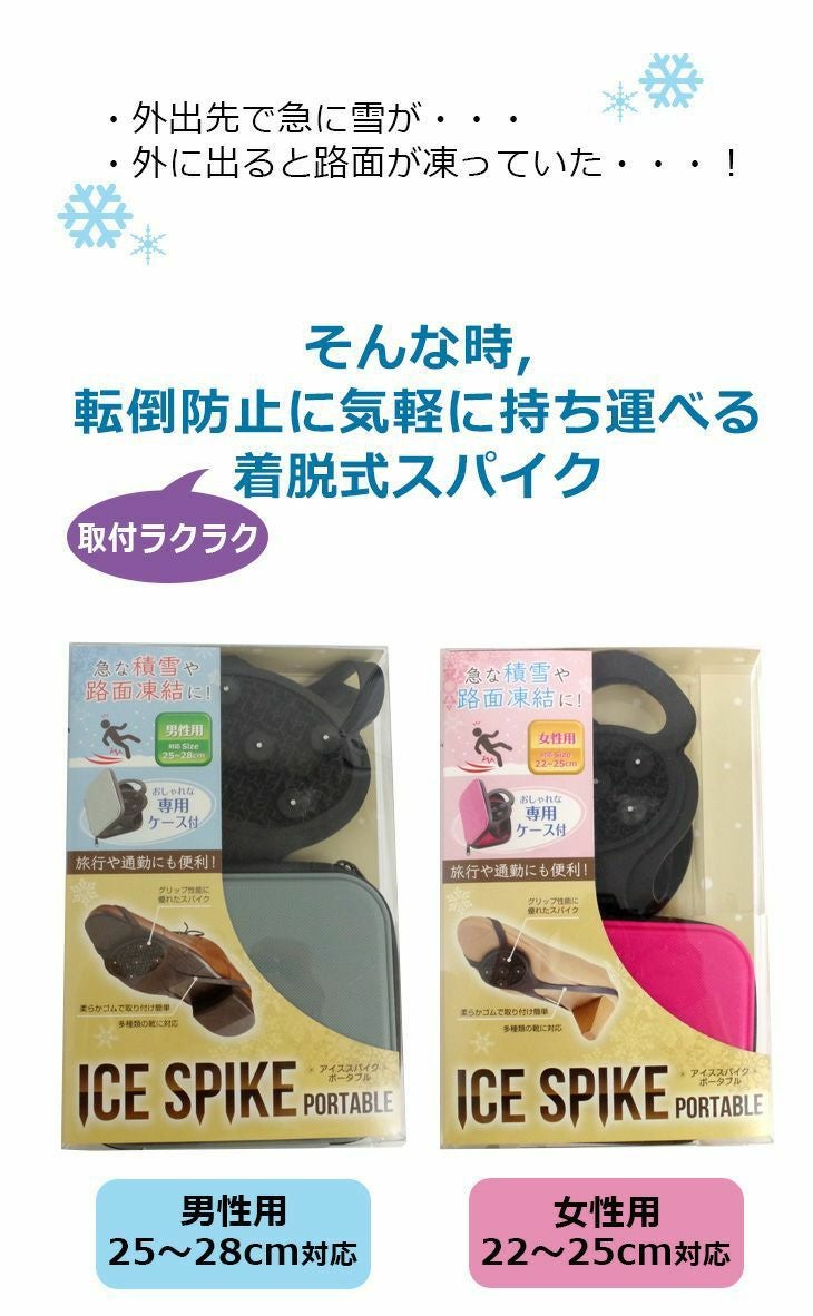 アミアミ アイススパイク ポータブル 着脱式スパイク 滑り止め 転倒防止 男性用 25-28cm 女性用 22-25cm