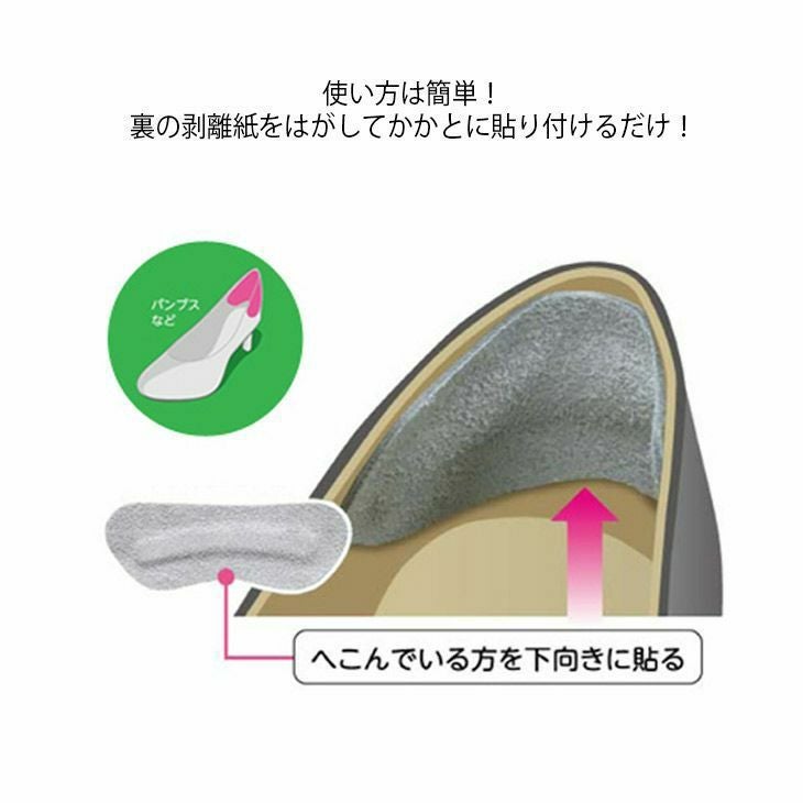 かかとの靴ズレを防止するかかとパッド。かかとの内側に貼り付けるだけで靴がフィットし、しっかりグリップ!