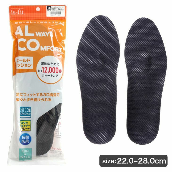 is-fit ALWAYS COMFORT ホールドクッションインソール 中敷き ブラック 22.0 28.0 男女兼用 抗菌 防臭 ウォーキング フィット スニーカー ビジネスシューズ 歩きやすい
