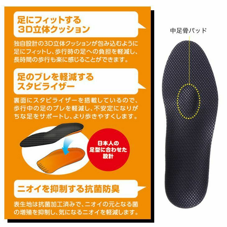 3D立体クッションが包み込むように足にフィットするインソール