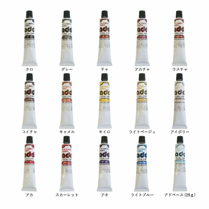 ■容量: ●アドカラーチューブ14色(クロ・グレー・チャ・アカチャ・ウスチャ・コイチャ・キャメル・キイロ・ライトベージュ・アイボリー・アカ・スカーレット・アオ・ライトブルー):20g/アドベース:25g