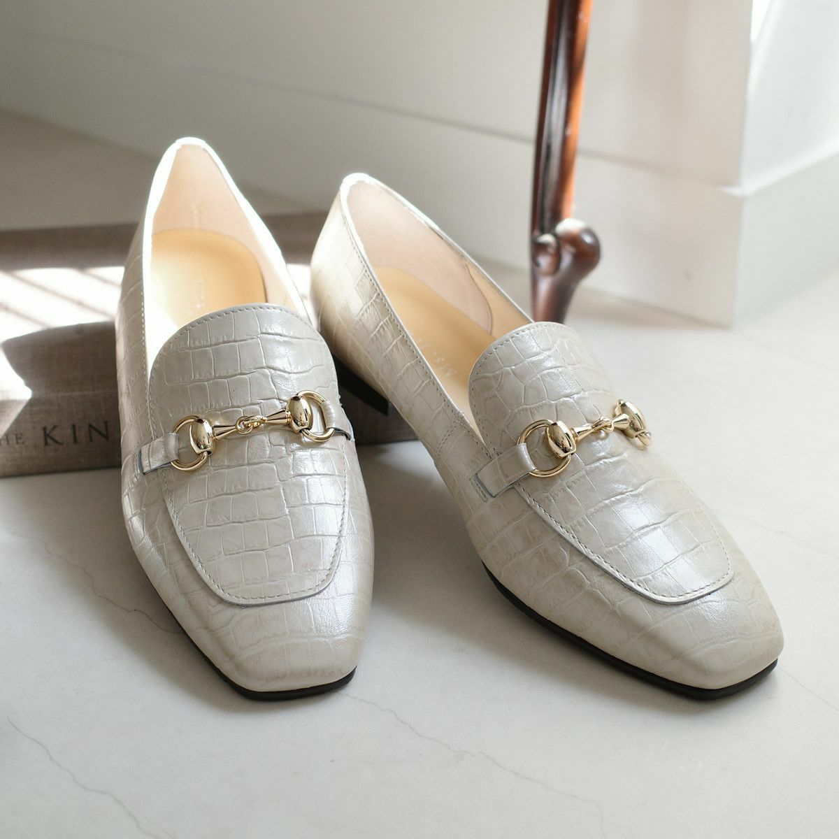 「ビットローファー」は、甲の部分に馬具をモチーフにした金具がついたデザインで、足元に上品でクラシカルなイメージをプラスしてくれます。