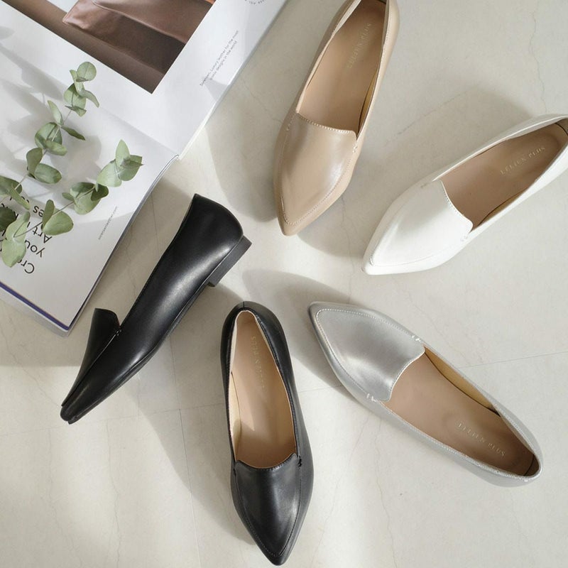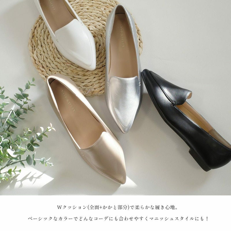 ベーシックなカラーでどんなコーデにも合わせやすくマニッシュスタイルにも!細身のポインテッドトゥが、すっきりシャープで女性らしい雰囲気に。