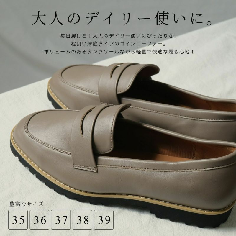 【在庫限り!特別価格!】タンクソールコインローファー厚底 レディース