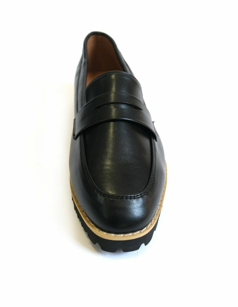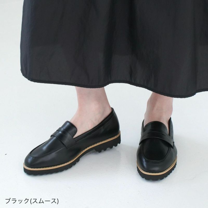 程よい厚底タイプで足が疲れにくいベーシックながらマニッシュ な表情で、キレイめからカジュアルまで幅広く活躍するデザイン。