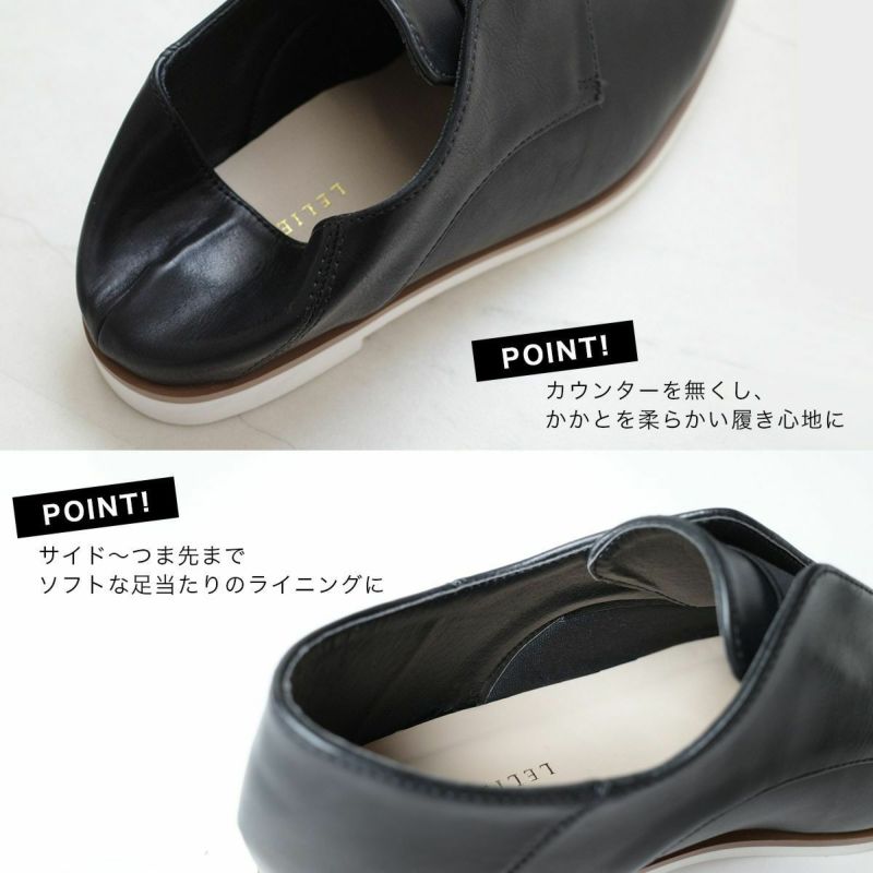甲の部分はゴムになっており、スリッポン感覚で脱ぎ履きしやすい。幅広いコーデに合わせやすく、かっちりときれいめなスタイルにも、カジュアルなスタイルにも馴染みます。