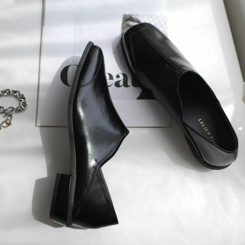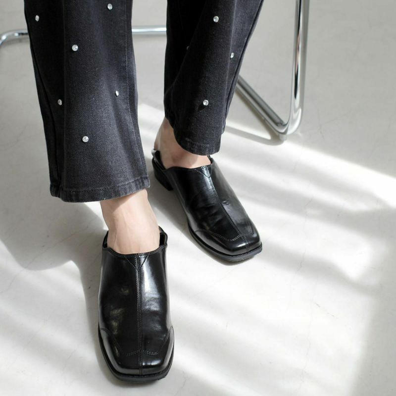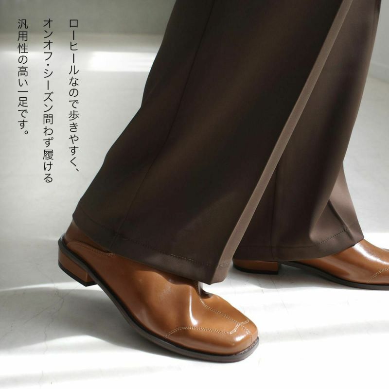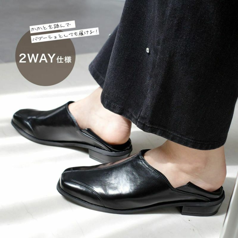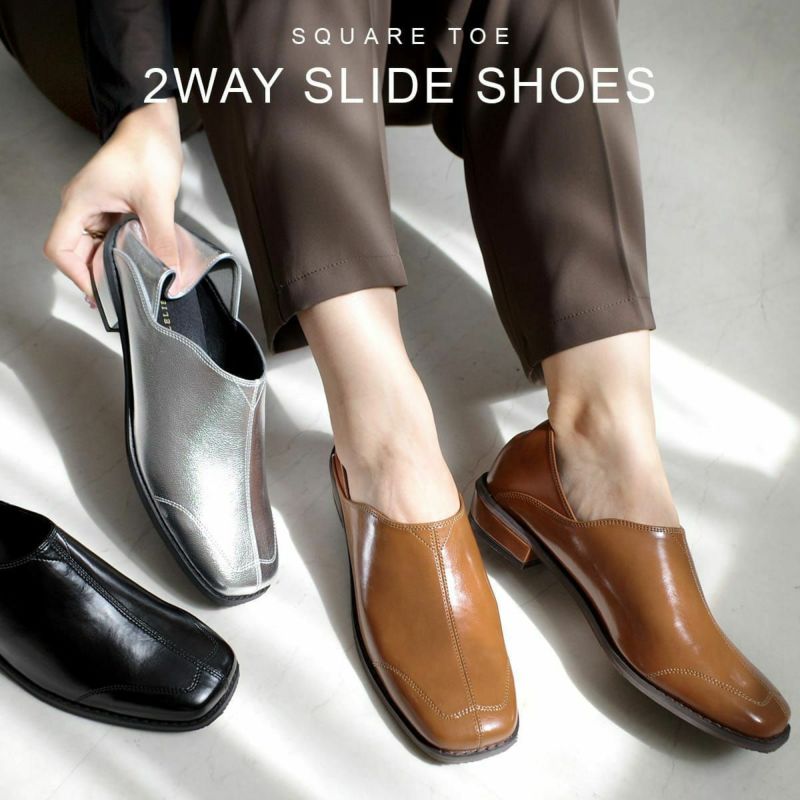 スクエアトゥ2WAYスライドシューズローファーバブーシュ レディース