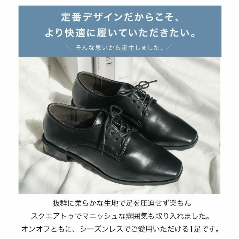 【2足以上で10%OFF対象】スクエアトゥオックスフォードシューズレースアップ レディース