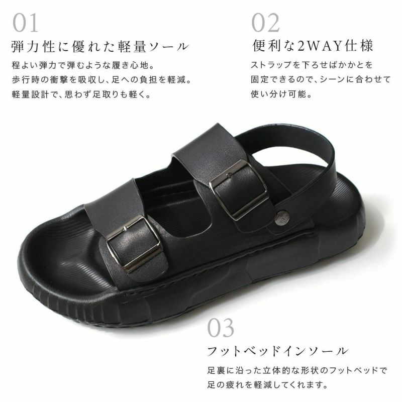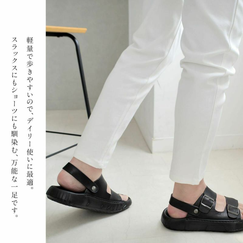 可動ストラップが便利な2WAY仕様 メンズ本革サンダル。