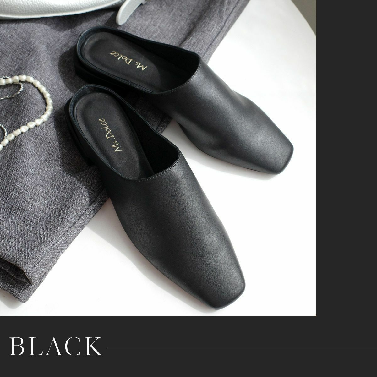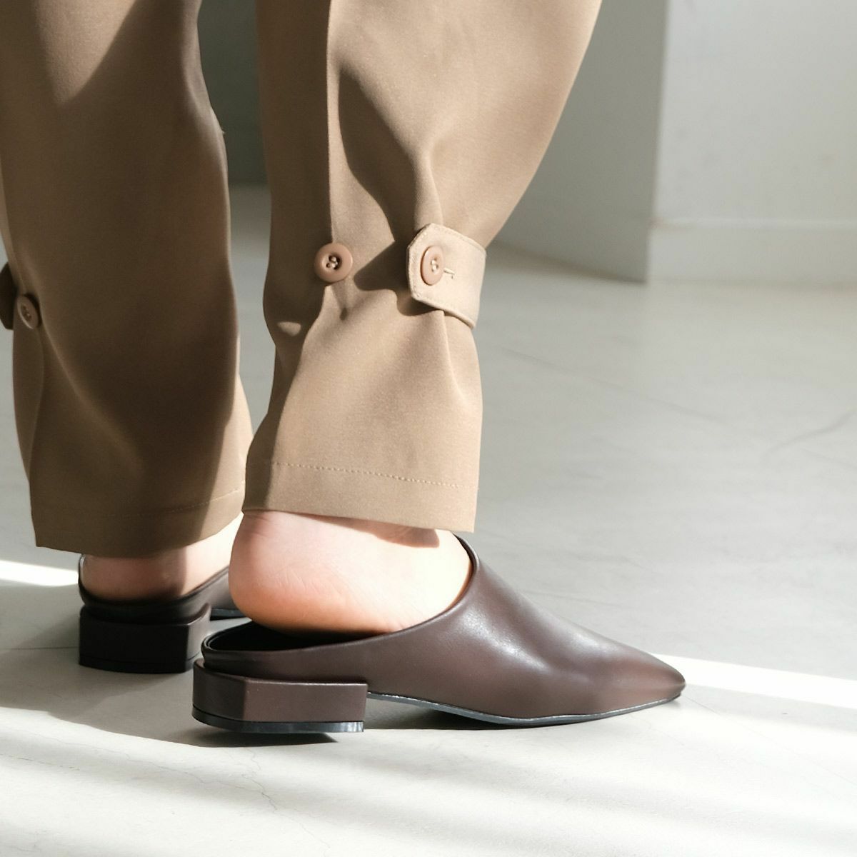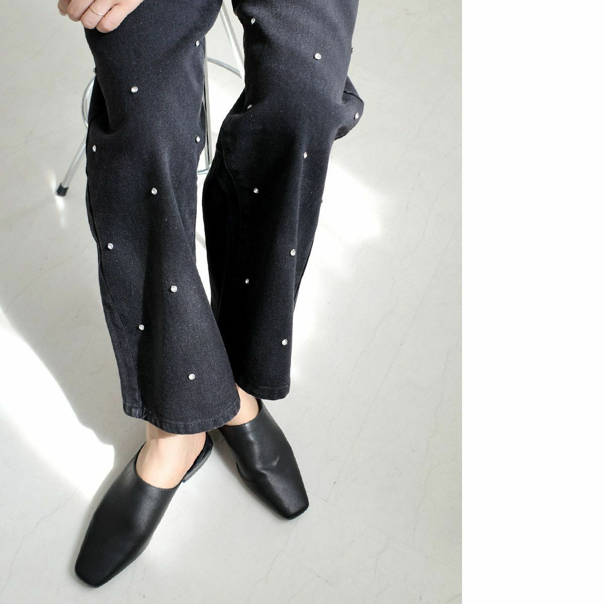 ミュールは足首が露出されることから、脚長効果も期待できます。足を細く見せたい方にもおすすめです。