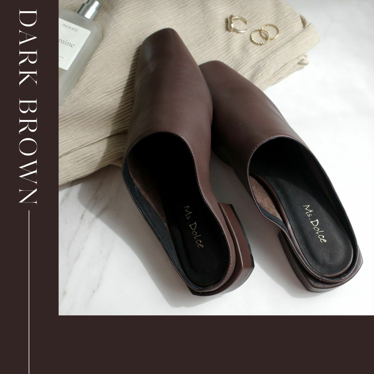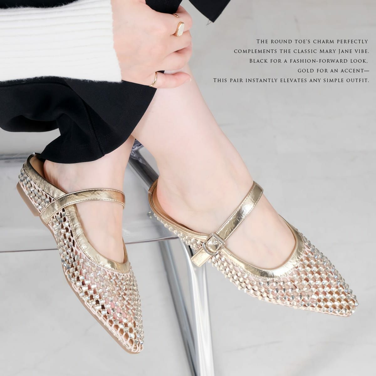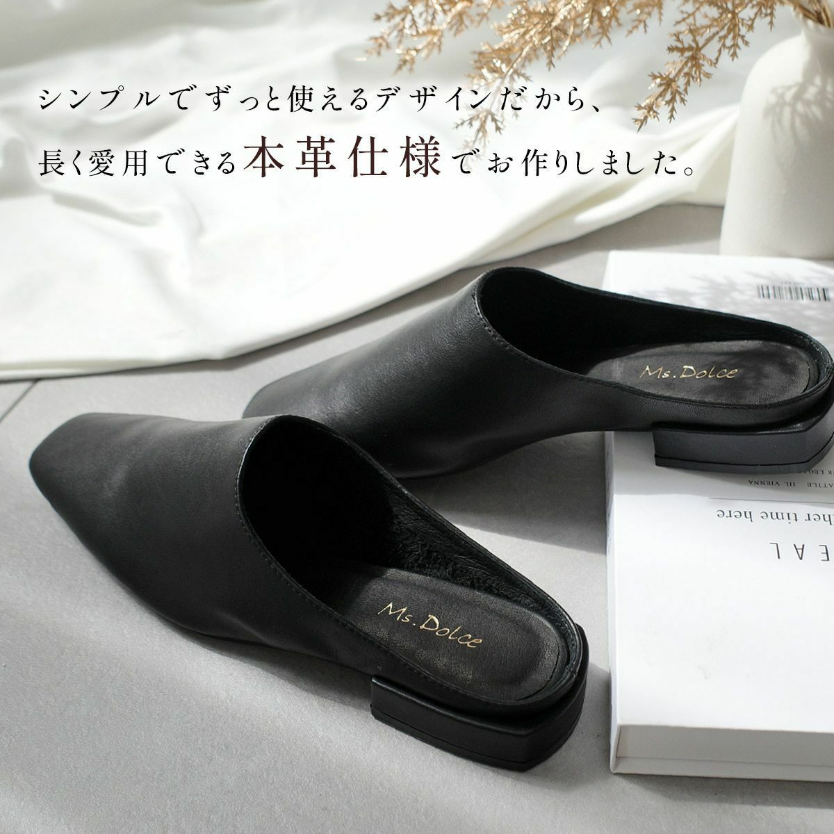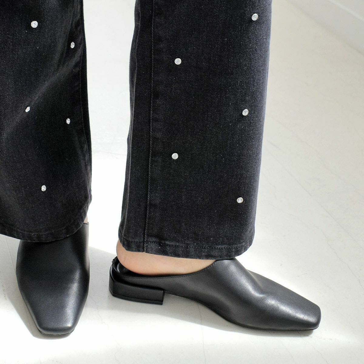ミュールは足首が露出されることから、脚長効果も期待できます。足を細く見せたい方にもおすすめです。