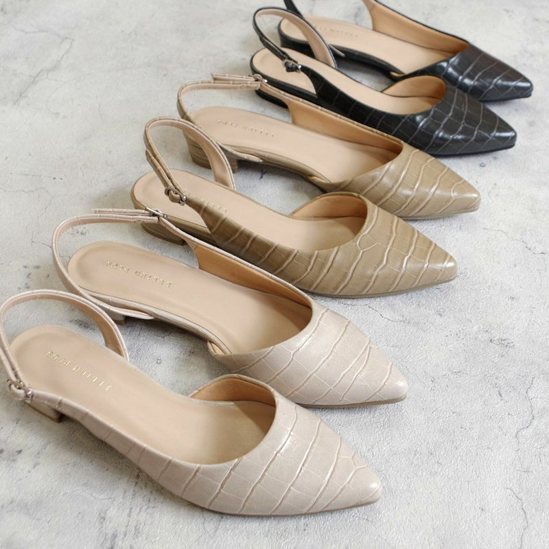 低反発インソールで、ローヒールなので歩きやすい、ポインテッドトゥなので大人っぽくキマりますカジュアルにもフェミニンにも使える。