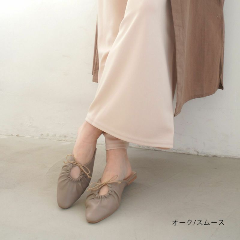 甲で包むようなリボンギャザーが女性らしい大人ミュール。