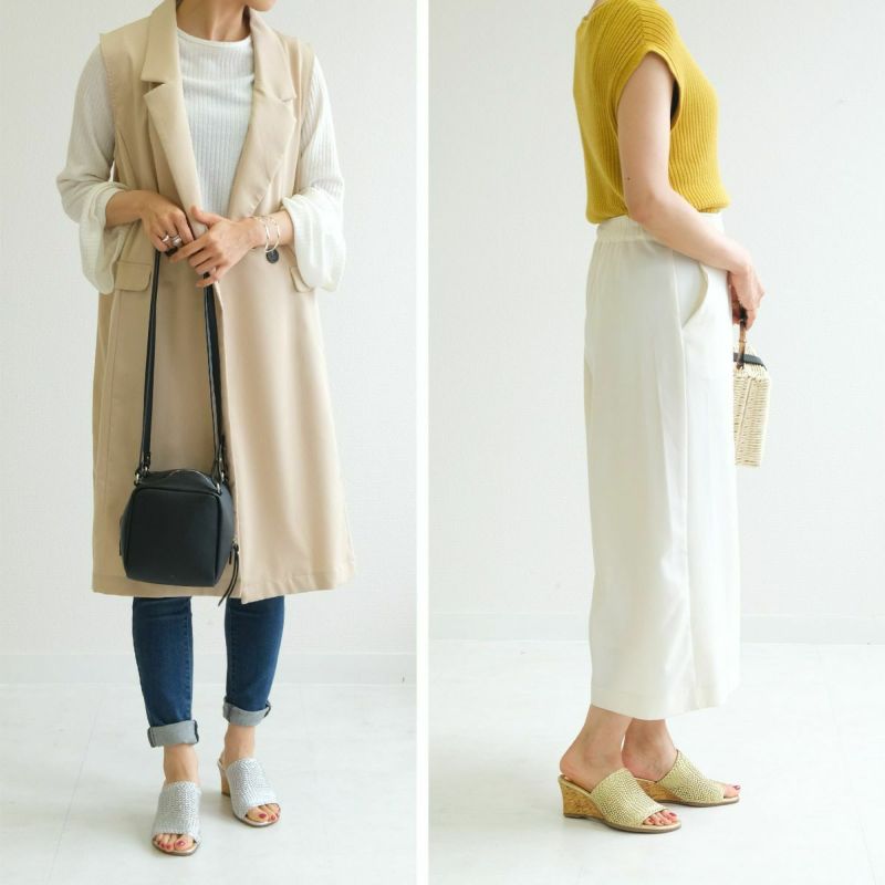 コルク調のウェッジソールヒールで華美になりすぎずほどよいこなれ感。