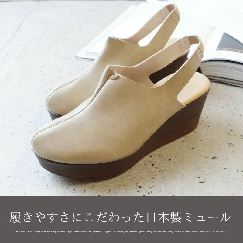 6.5cmのウェッジソールで美脚魅せ!アッパーが柔らかく、裏地にやわらかな起毛した生地を使用しているから、足にやさしくフィットします。