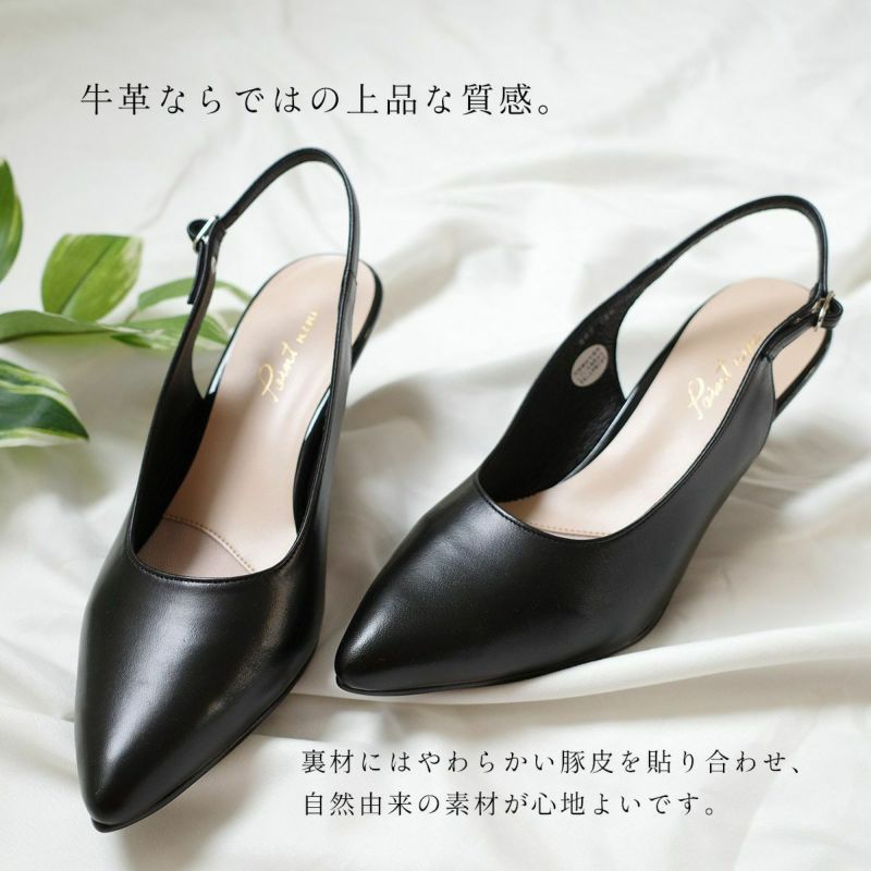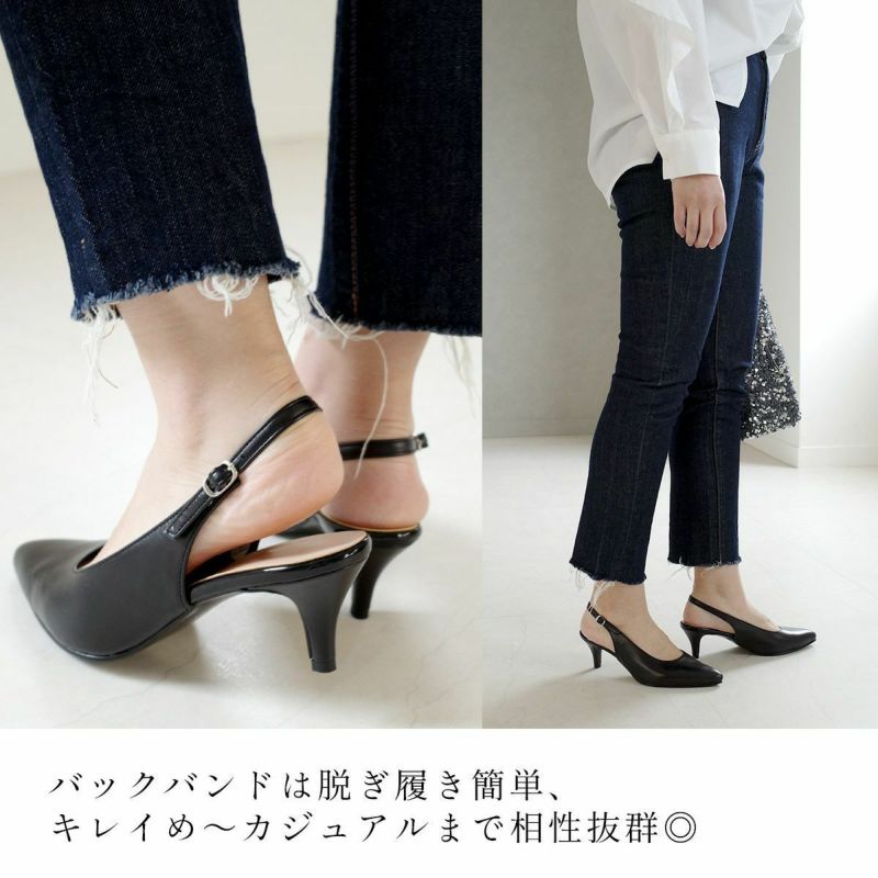 シンプルなバックバンド、約5.5cmのヒールは美脚効果抜群。