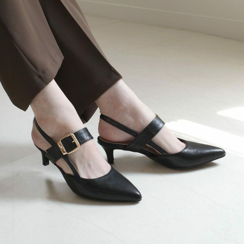 程よい高さのヒールとポインテッドトゥで美脚に。