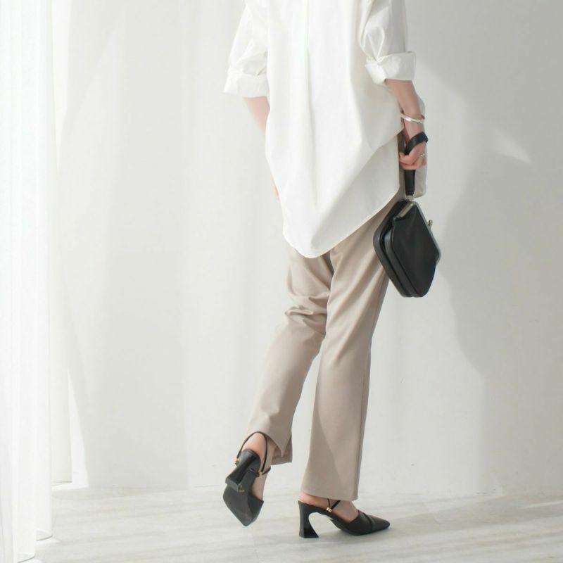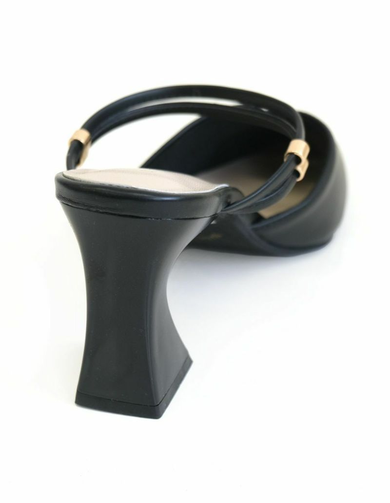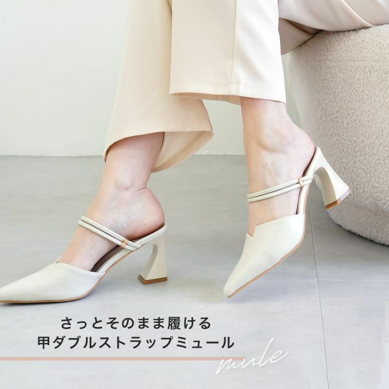 すっきりしたラインで美脚効果抜群なストラップ付2WAYミュール
