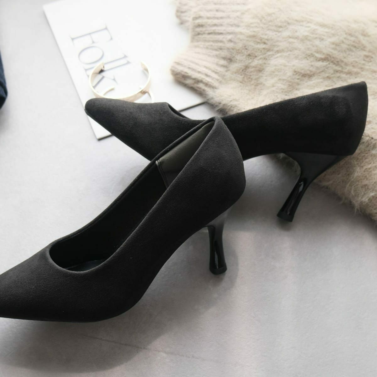 ポインテッドトゥ3cmヒールVカットパンプス レディース