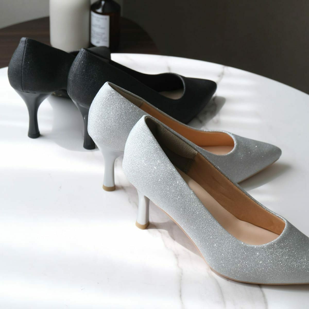 ポインテッドトゥパンプス7cm生地巻きヒール レディース