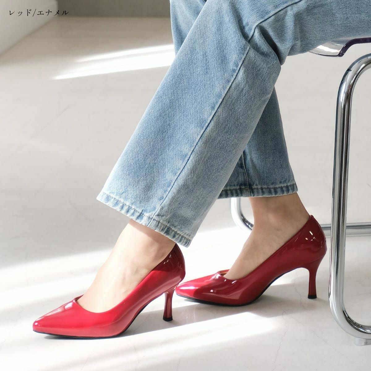 ポインテッドトゥパンプス 7cmカラーヒール 走れるパンプス7cmヒール レディース