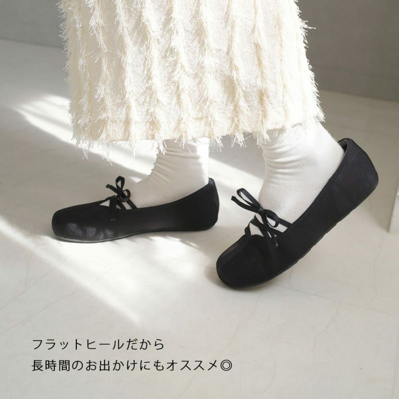 程よいゆとりをもってちょうどよく履けます。甲のリボンはぴったりです。