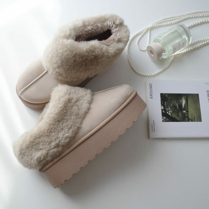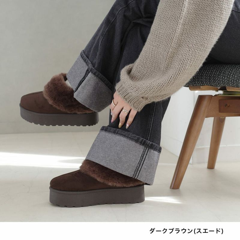 5.5cmの厚底ヒールだから脚長効果バツグン!着ぶくれしやすい秋冬コーデの強い味方!5.5cmヒールでスタイルアップも叶うムートンブーツ。