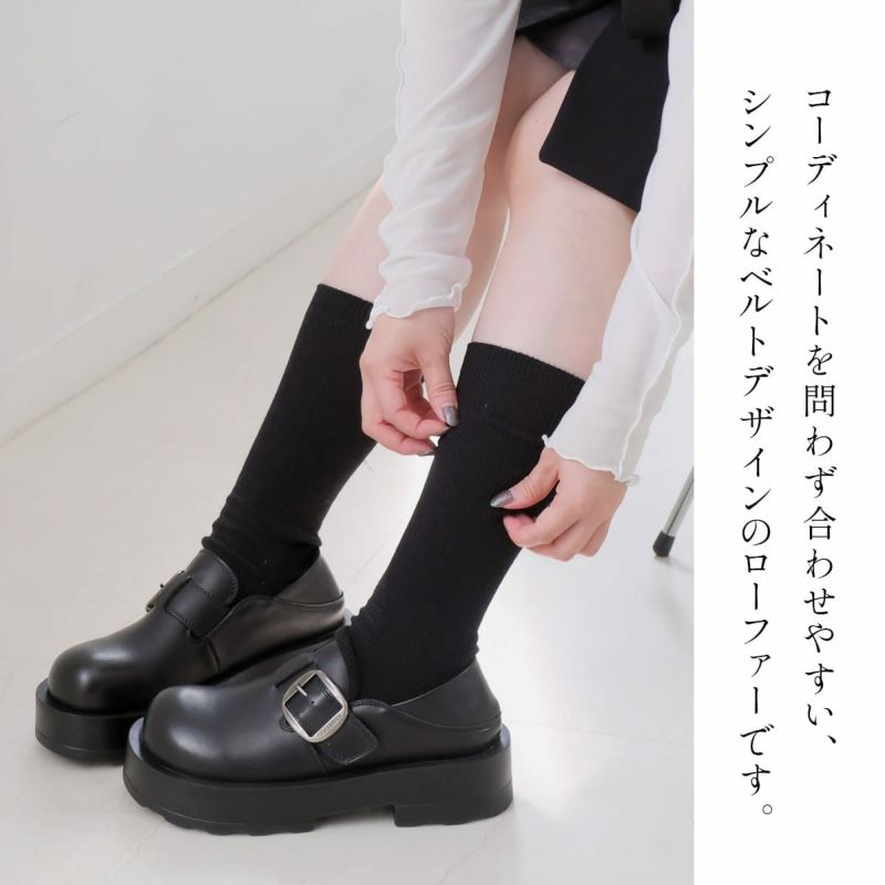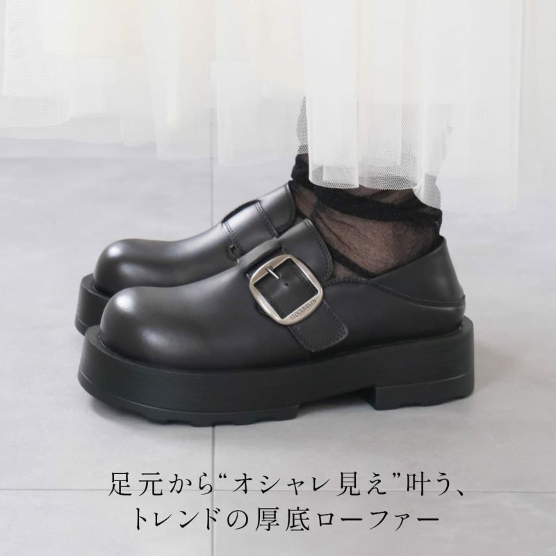 マジックテープで脱ぎ履きスムーズ足元からオシャレ見え叶う、トレンドの厚底ローファー