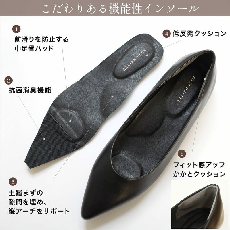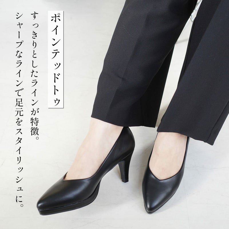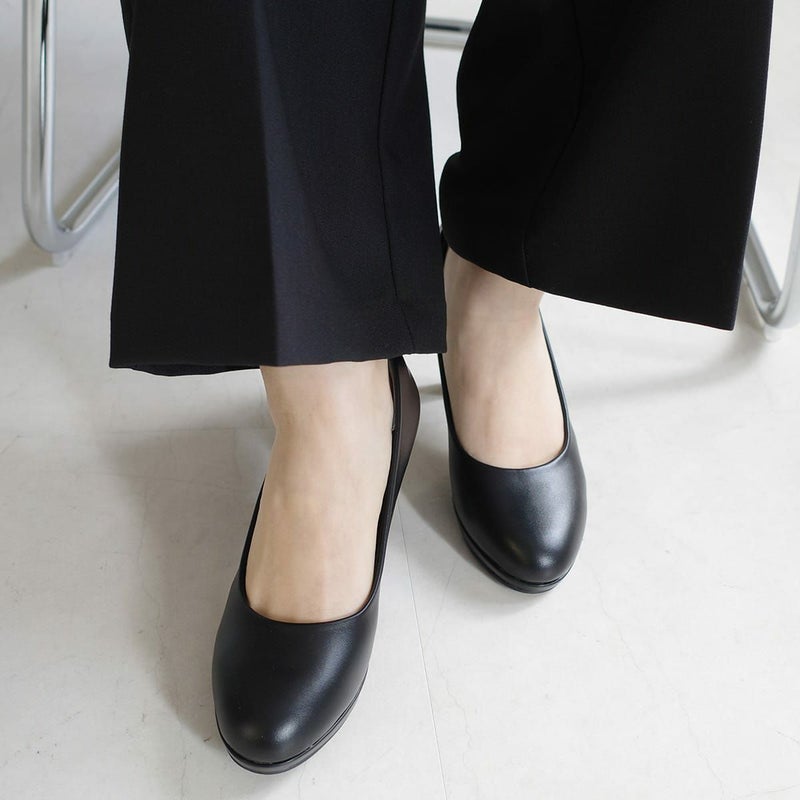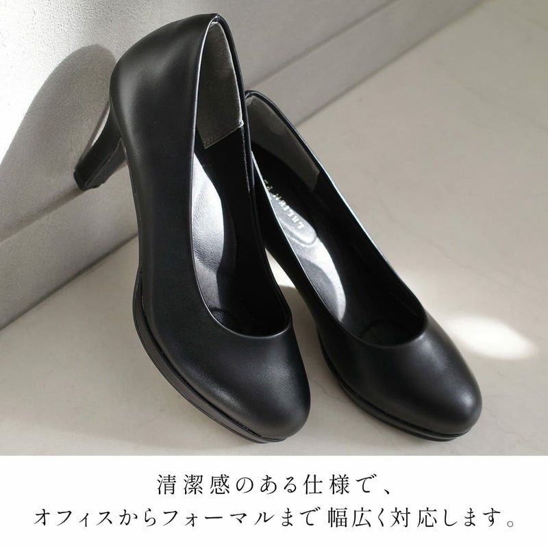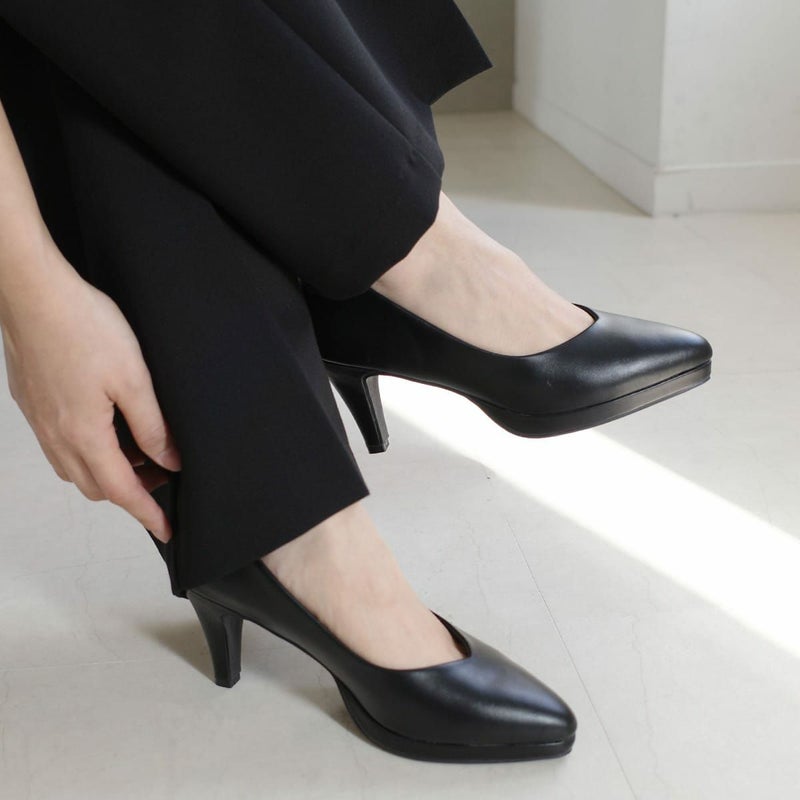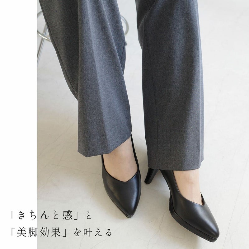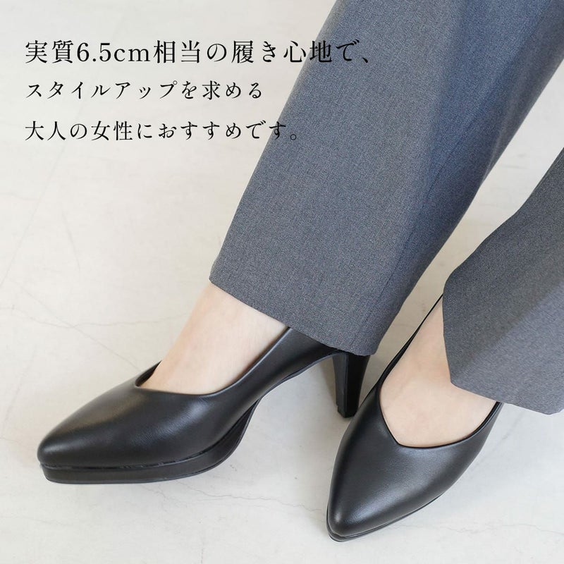 清潔感のある仕様でオフィスからフォーマルまで幅広く対応実質6.5cm相当の履き心地で、スタイルアップを求める大人の女性におすすめ