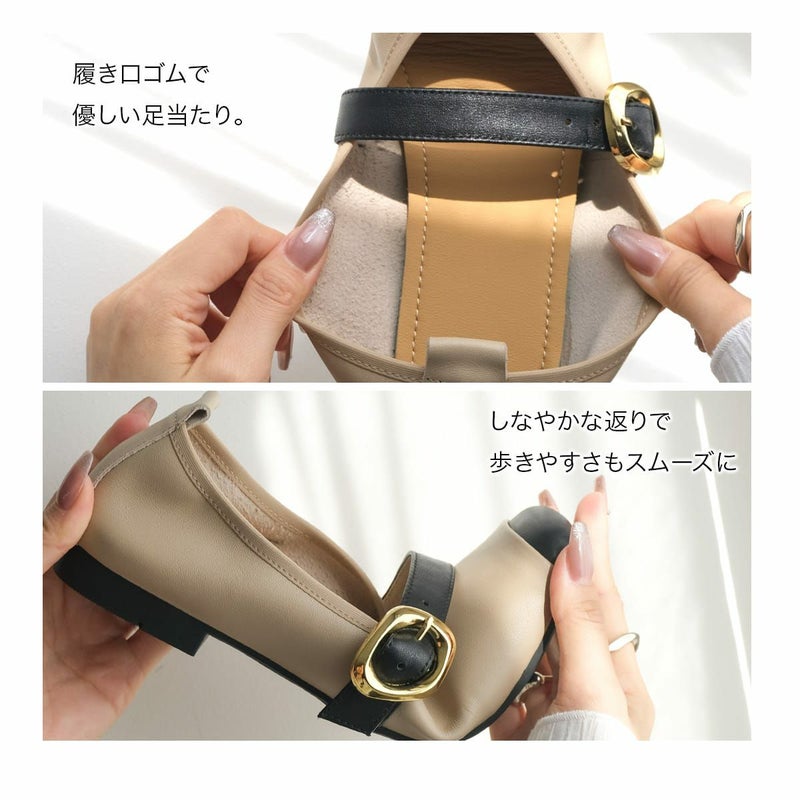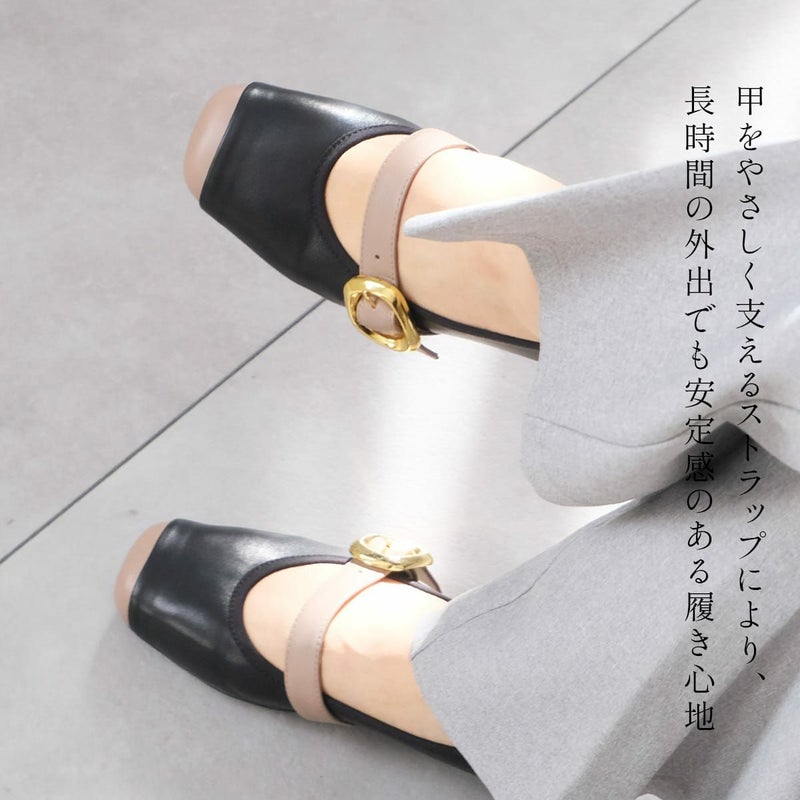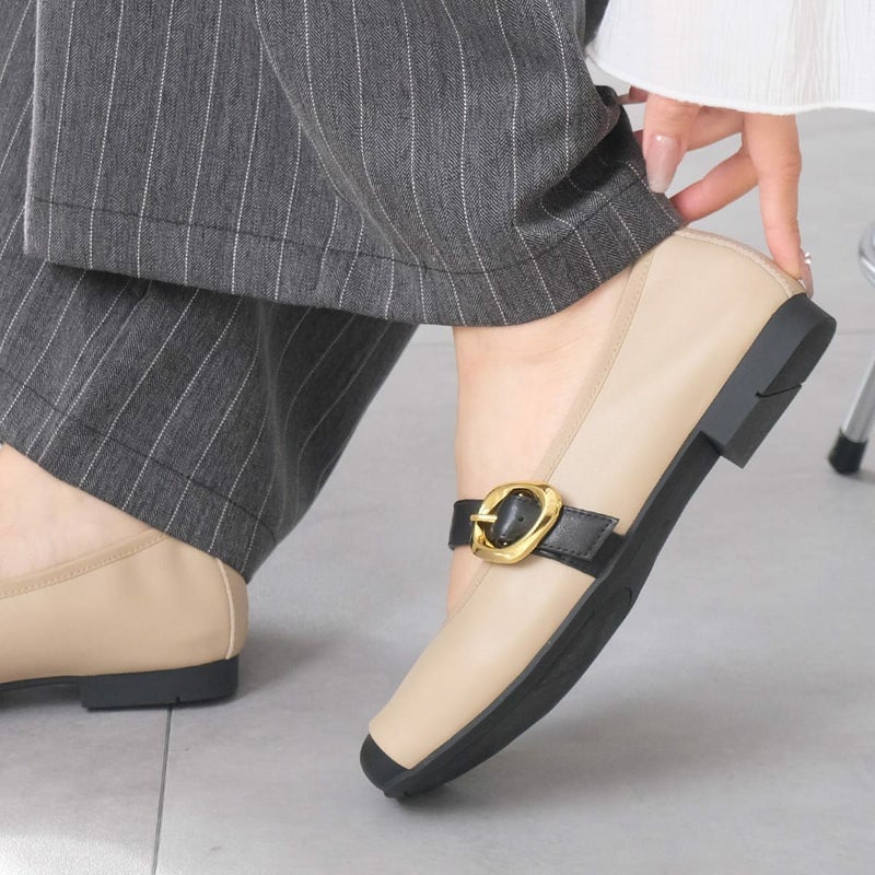 スクエアトゥベルトフラットパンプス レディース