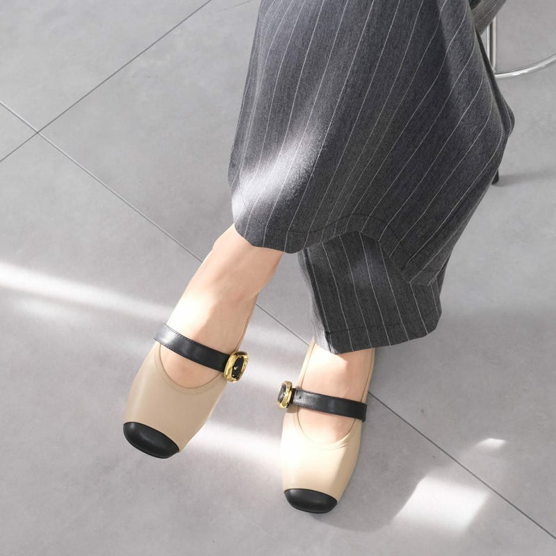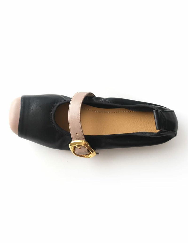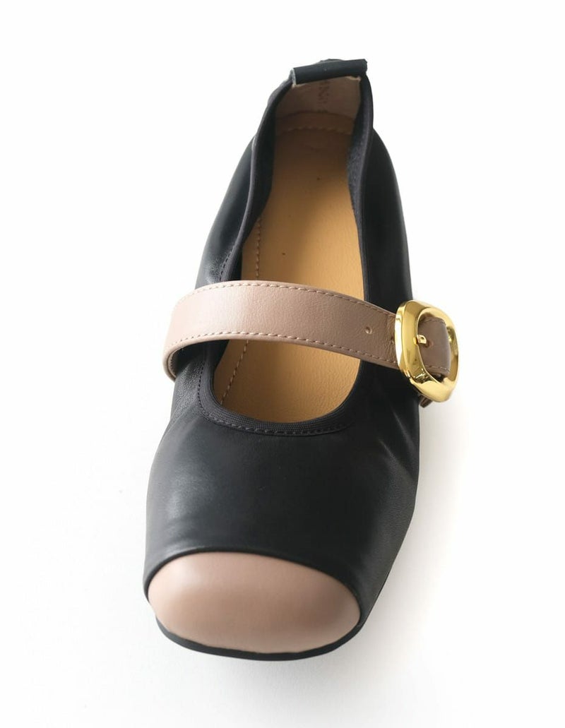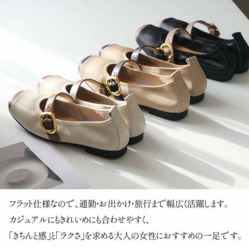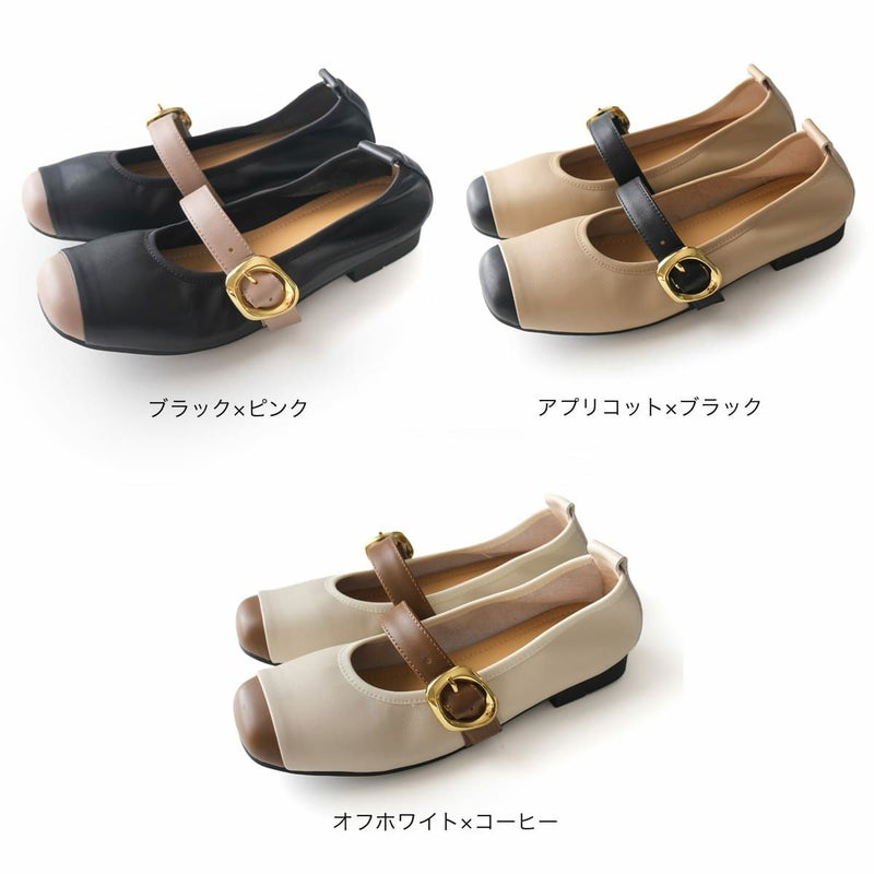やわらかな本革を使用した、上品バイカラーのメリージェーンフラットパンプス