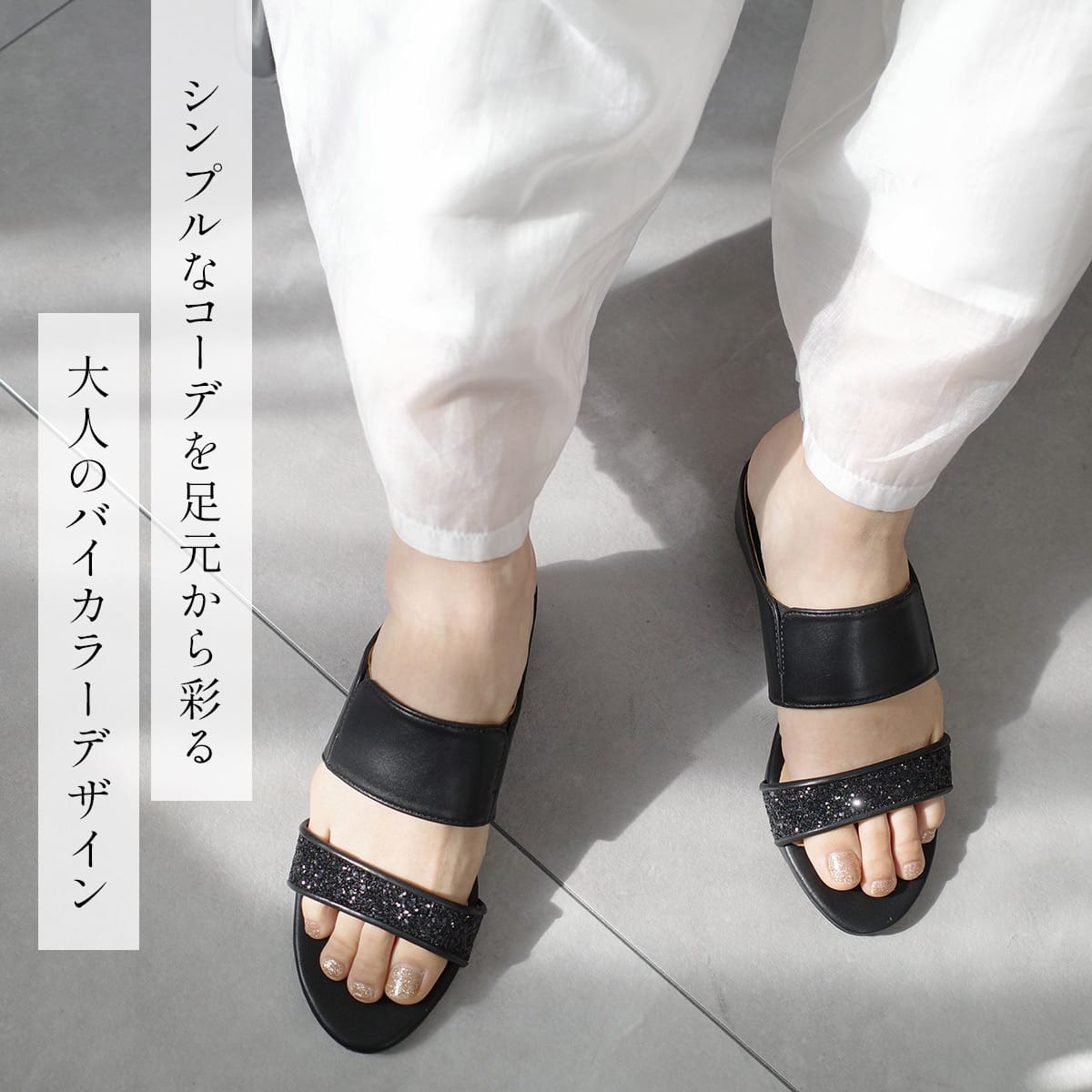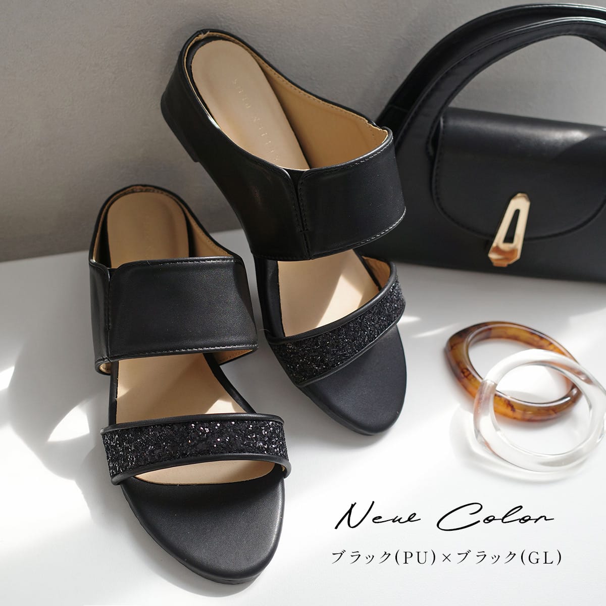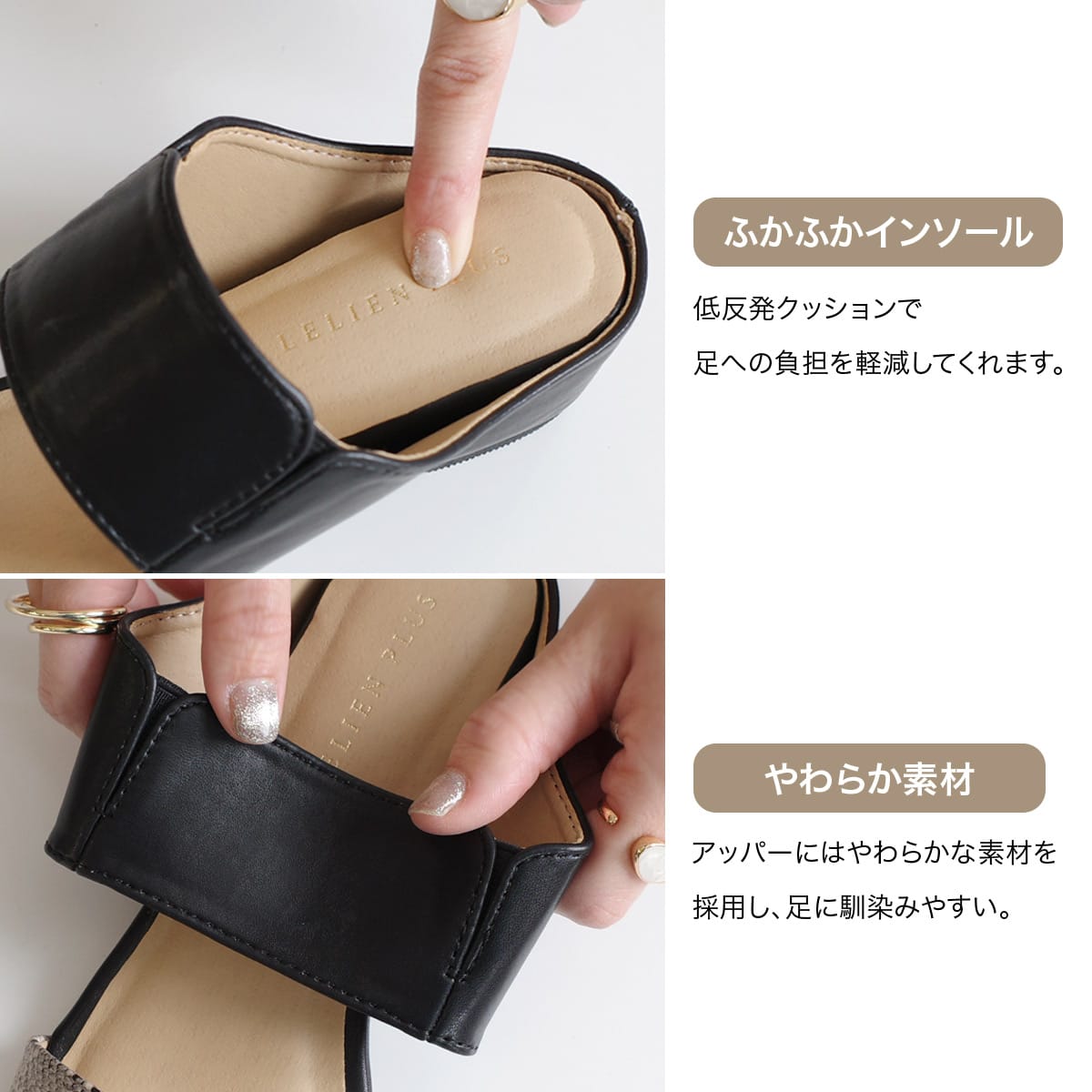 スクエアトゥゴムストラップサンダル華奢 レディース