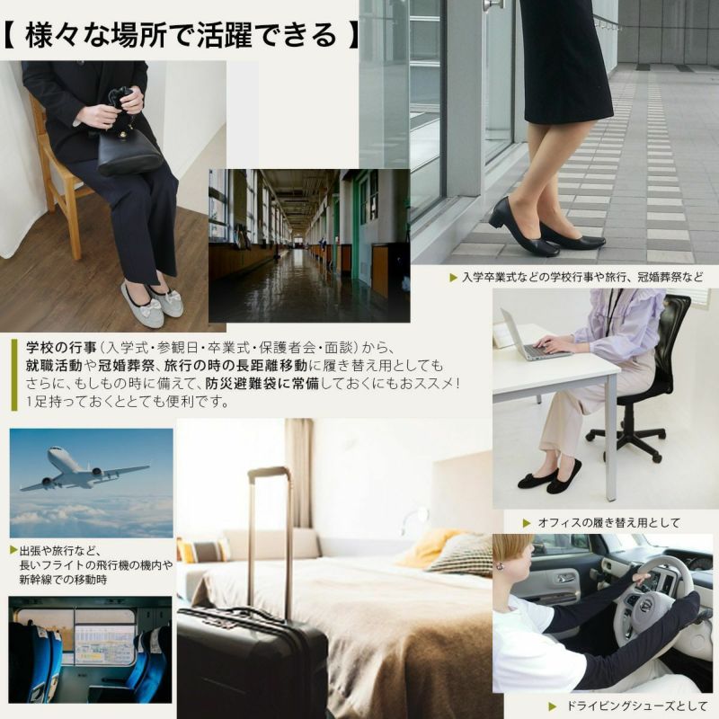 ■様々な場所で/出張や旅行など、長いフライトの飛行機の機内や新幹線での移動時に、旅館やホテル、受験、参観日、入学式、卒業式ほか、学校行事の室内履きとして大活躍の必須アイテム!ドライビングシューズやオフィスの履き替えようとしてもお使いいただけ、様々な場所で活躍します。