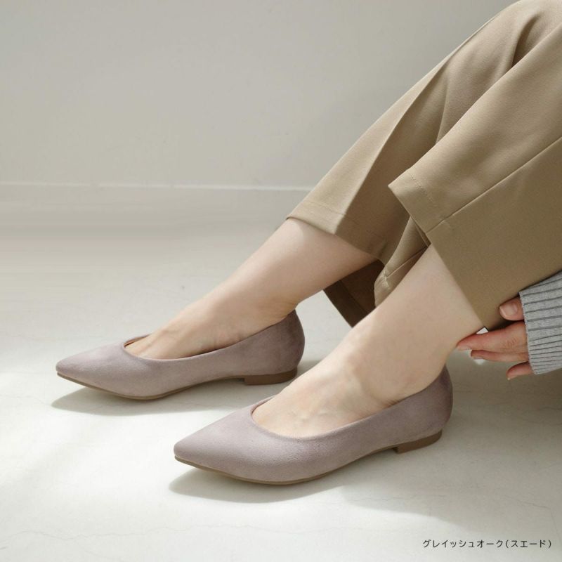 シャープで女らしく美脚に見せるポインテッドトゥ。ローヒールでありながらポインテッドで大人っぽくきれいめなフォルムで美脚に見せてくれる効果も。