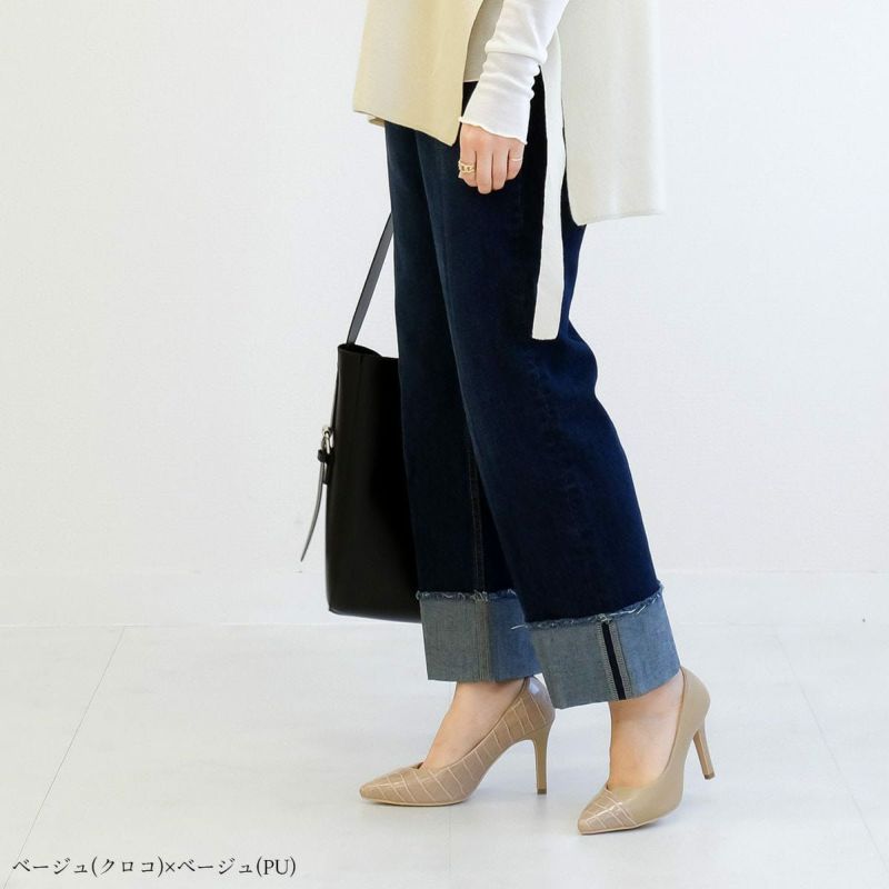 • ブラック(クロコ)×ブラック(PU)、エクリュベージュ(クロコ)×IV(PU)、ベージュ(クロコ)×ベージュ(PU)の柄は左右対称ではございません。
