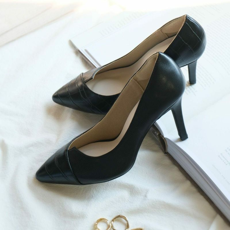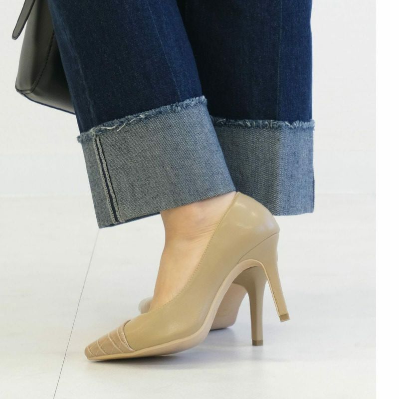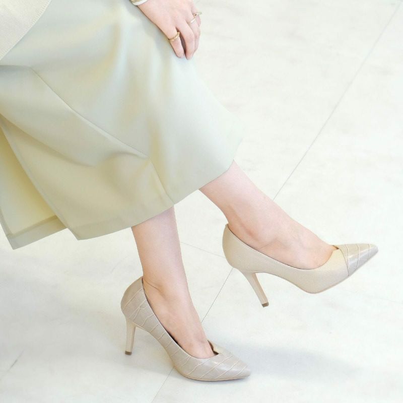 すらりとしたつま先と切り替えデザインが足元にアクセント華奢なピンヒールが脚をキレイに魅せてくれます。