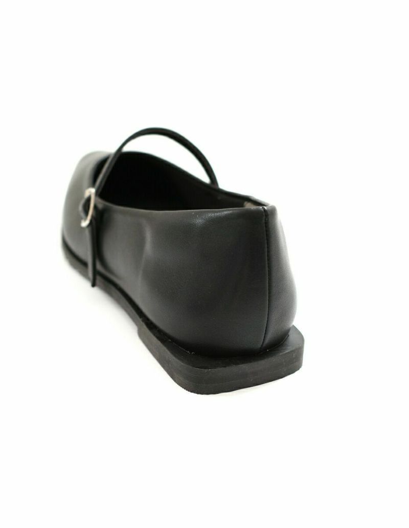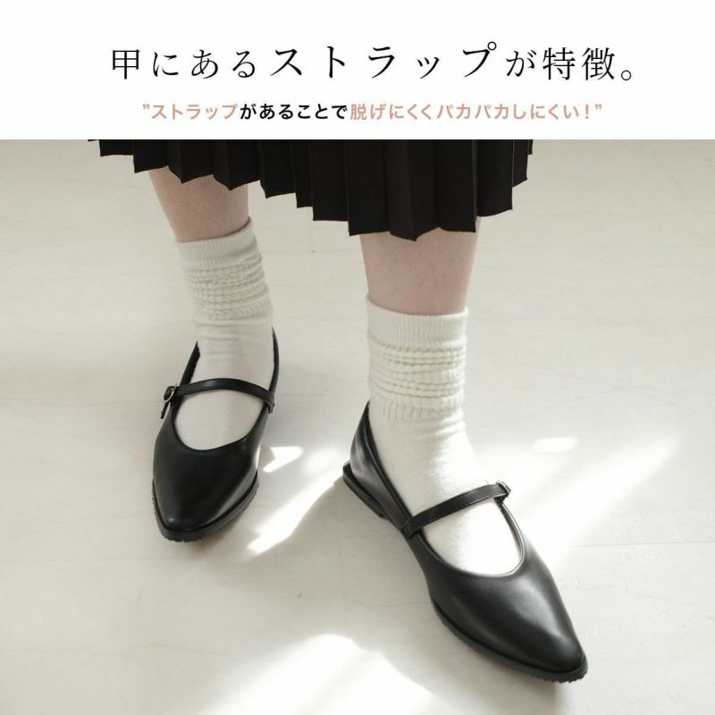 全体的に楽に履けます。ストラップがあるのでパカパカすることなく履けます。つま先はポインテッドなので前まで入らず余っています。とても柔らかな素材で痛くないです。