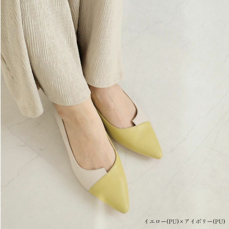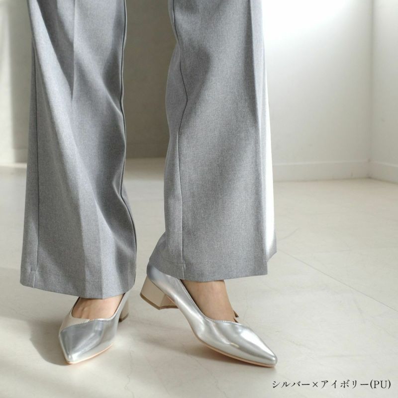 【在庫限り!特別価格!】ポインテッドトゥバイカラー太ヒールパンプス レディース