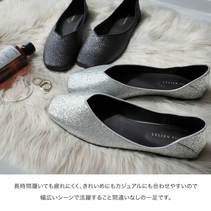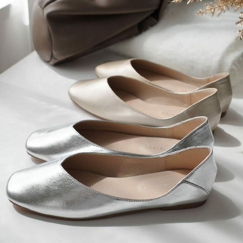 スクエアトゥで大人っぽくきまる!柔らかく、気軽にさっと履けて使いやすいフラットパンプス。